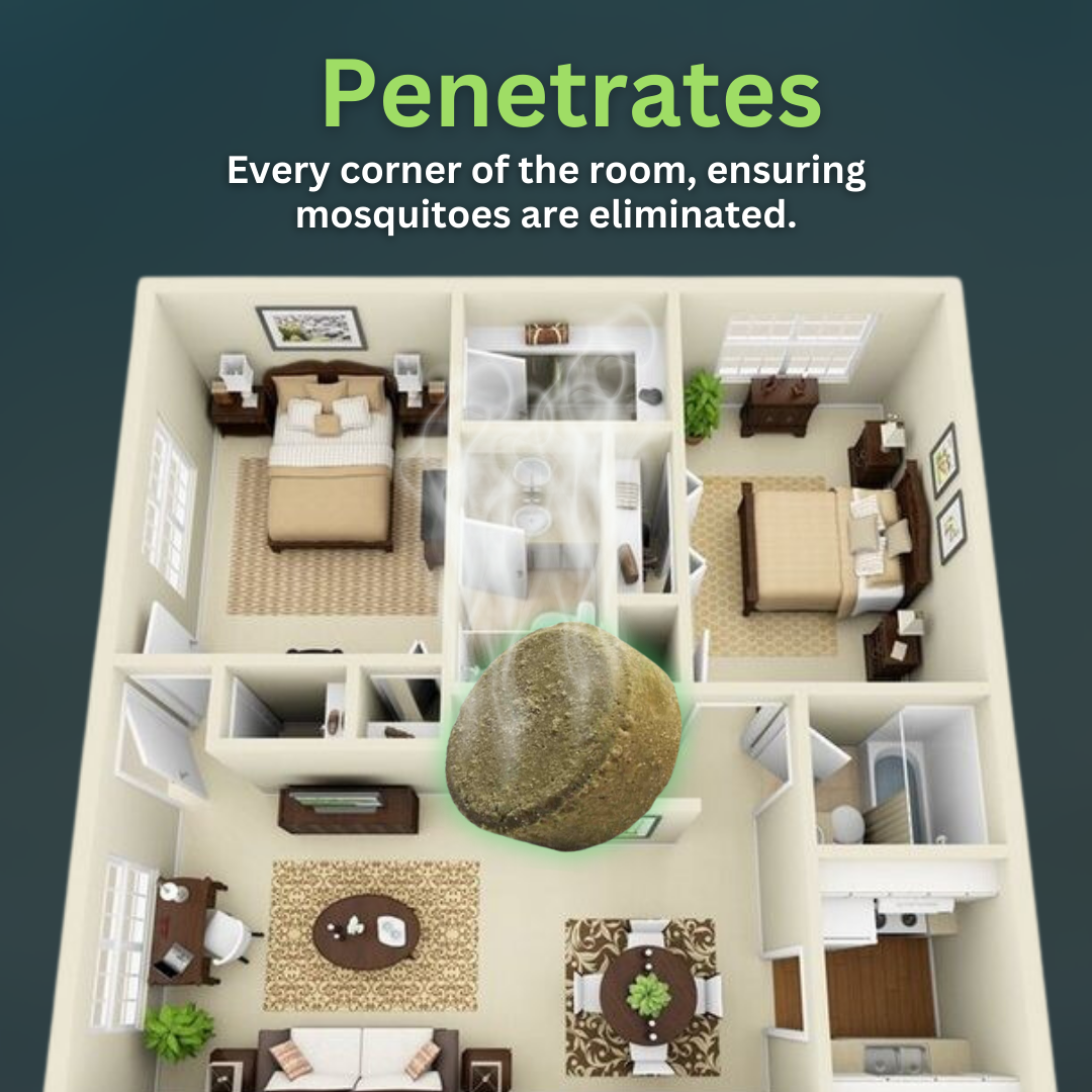 Penetrates Every Corner of Your Space: Our innovative fogging tablets are designed to ensure comprehensive mosquito elimination by penetrating every corner and crevice of your space. Once ignited, the tablet releases a fine, mosquito-repelling mist that spreads evenly throughout the room. This mist reaches into the smallest nooks and crannies, ensuring no hiding place is left untouched.